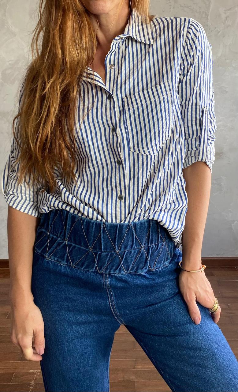Tem leveza, tem presença. Transita do dia para a noite com facilidade e combina com qualquer jeans — do azul claro ao índigo profundo.