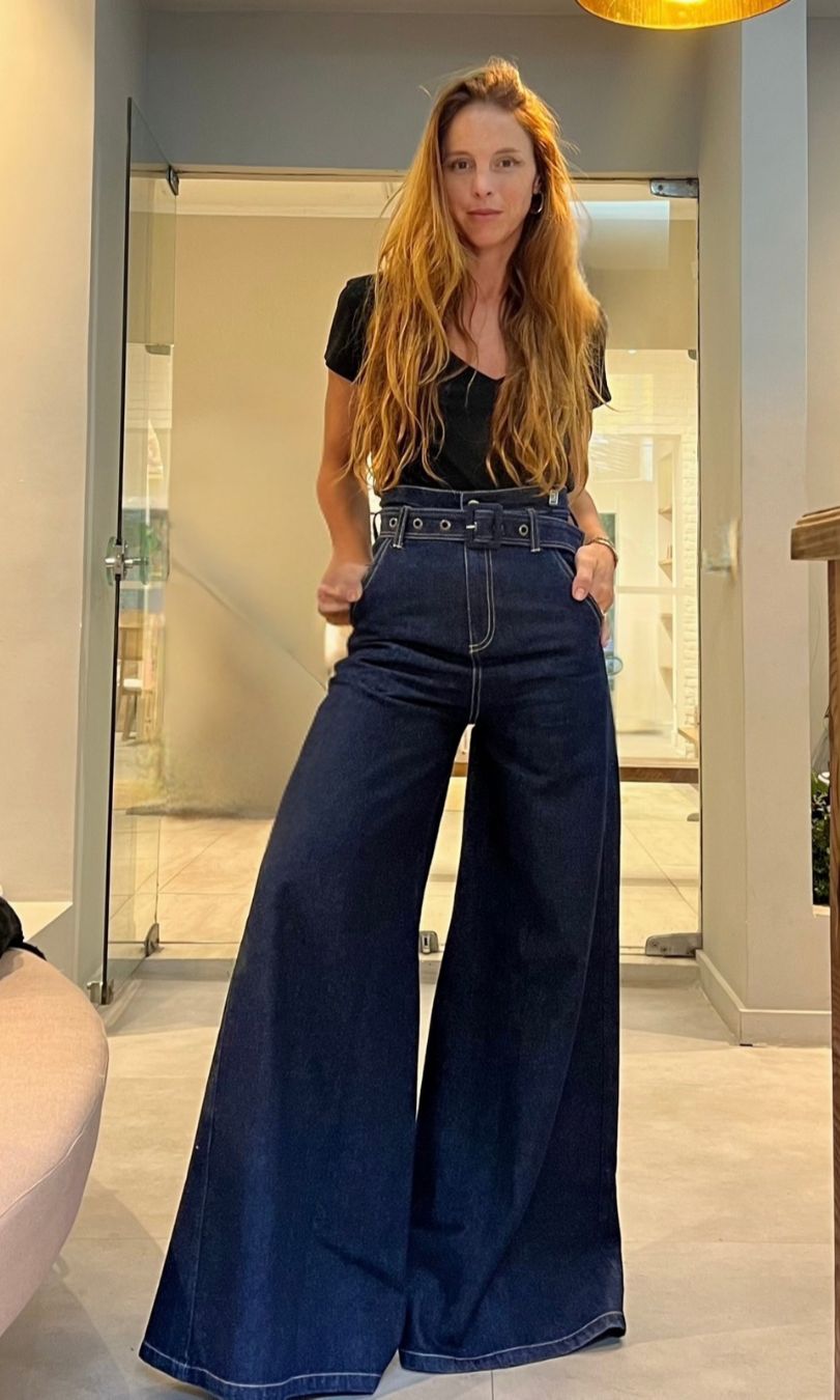 Calça Pantalona Cinto super dark