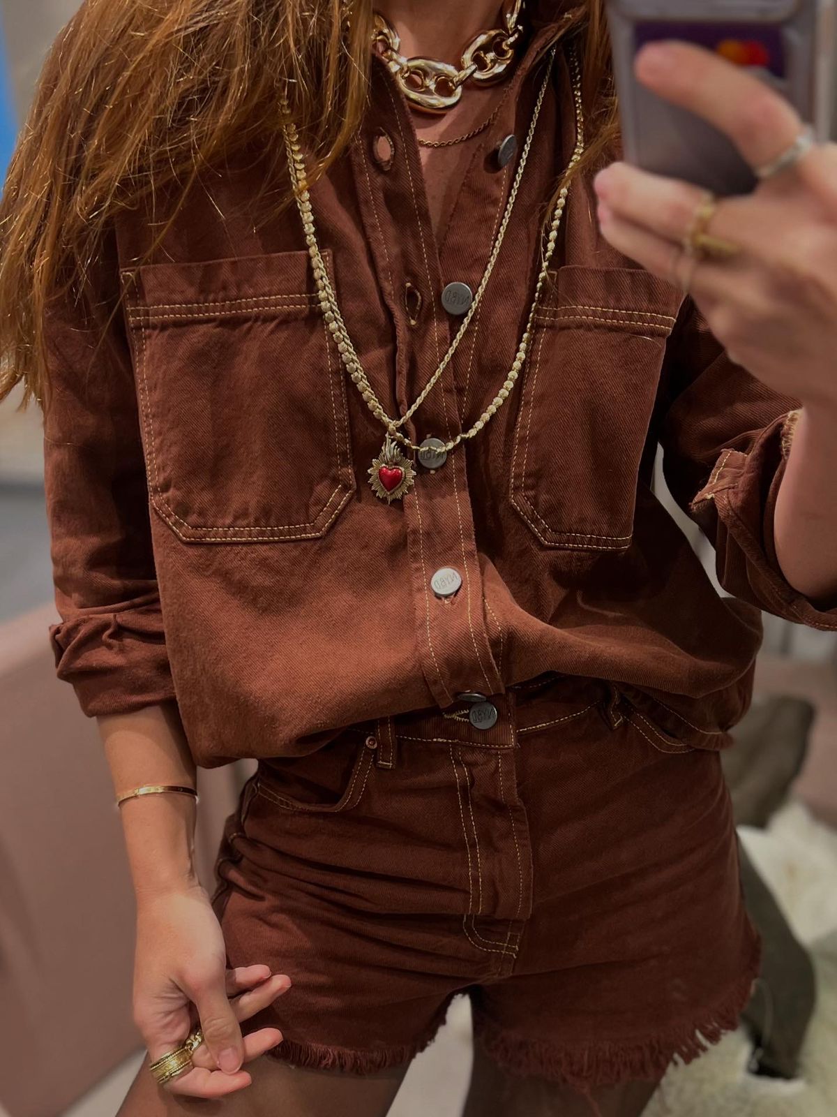 Camisa jeans tingida. Modelo para ser usado um pouco maior.